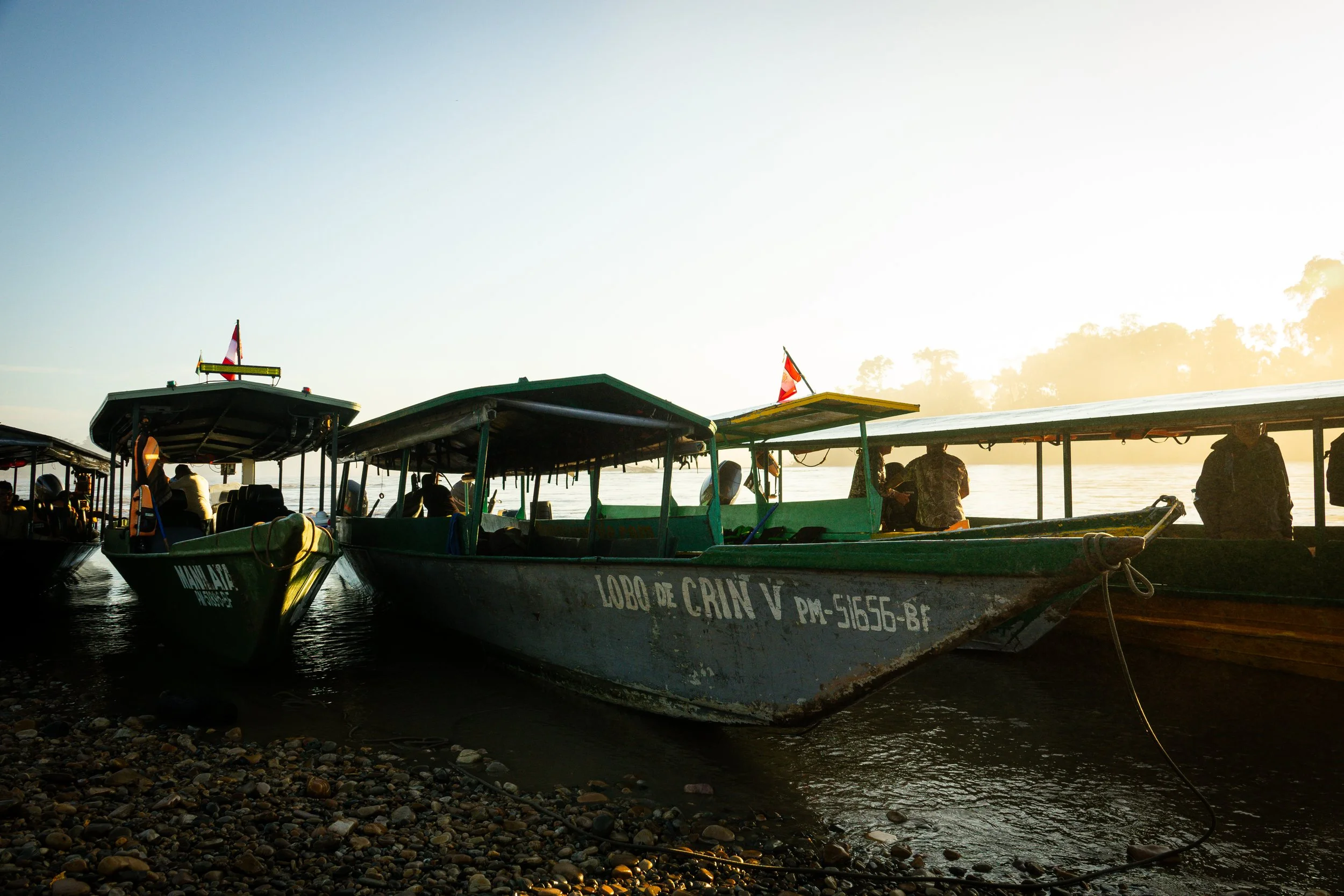 Boarding a boat on the Tambopata River
