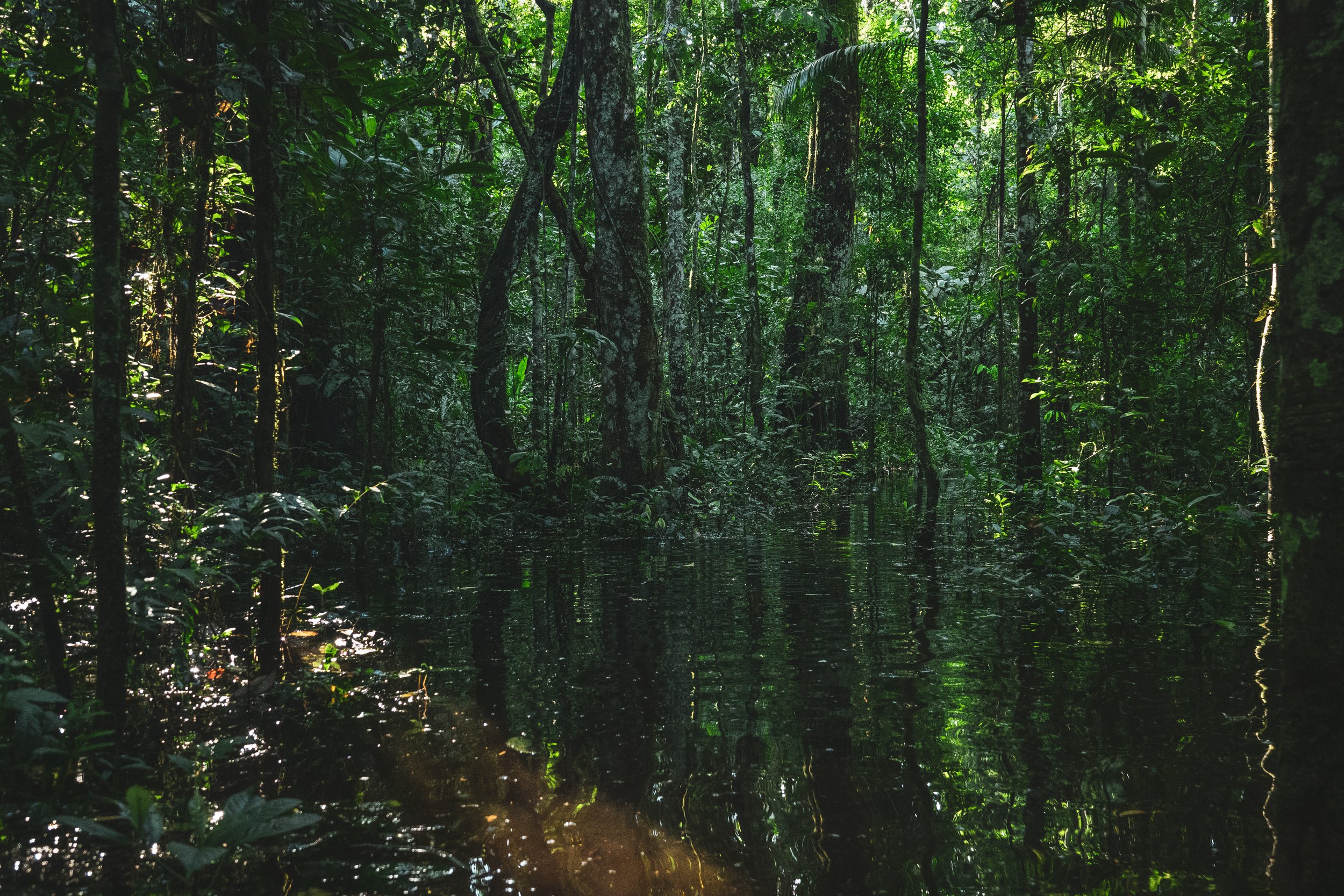 Walking in the flooded jungle searching for wildlife